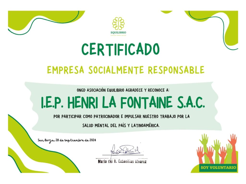 Hemos sido reconocidos como una empresa socialmente responsable, destacando nuestro compromiso con la sostenibilidad y la formación de ciudadanos conscientes y comprometidos con la sociedad.